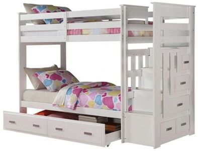 The Allentown collection was designed to save space. This twin over twin bunk bed is a perfect solution for your children's bedroom. The piece features a bright white finish and offers durability as well as a clean style. The full-length guard rails provide safety.Read More
