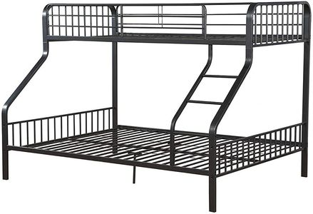 This space-saving Caius twin over queen metal bunk bed meets all your needs and expectations. Features easy access guardrails, right facing built-in ladder and a metal tube support slat system. Accommodating a xl twin and queen mattress, this sturdy bunk bed will last through years of play.Read More