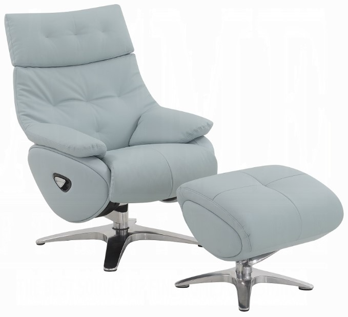 Enhance your living space with the janella collection accent chair and matching ottoman, a pinnacle of comfort and modern design. Upholstered in a soft, baby blue top grain leather, this chair combines elegance with functionality, featuring a smooth swivel base that lets you turn freely, embracing a panoramic view of your stylish home.Read More