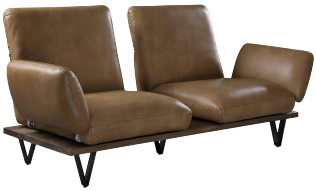 The Narech Sofa is one you'll want to spend lots of time in. This beautiful leather sofa with swivel features adjustable armrests and backrests to fulfill all your preferences. Matching its rich nutmeg top grain leather, solid wood base and unique 'V' shaped metal legs.Read More
