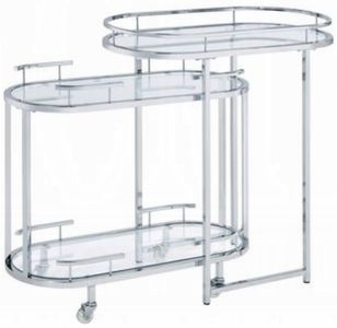 This serving cart and bar table are perfect for your next party! The chrome frame and wheels on the serving cart make it easy to move around, and the shelf gives you a place to store your favorite drinks.Read More