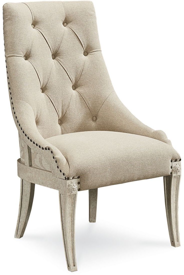 A.R.T. Furniture® Arch Salvage Reeves Host Chair with button tufted and exposed wooden frame.Read More
