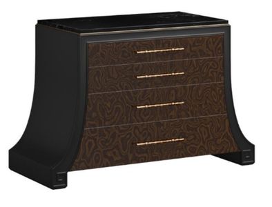 New traditional accent chest twith two tone finish: black ebony sides, top and legs and hazelnut finished burl drawer fronts with faux bamboo handles in burnished gold. Top in black marchine marble.Read More