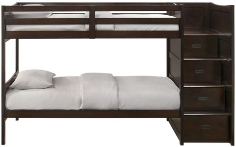 The Sami twin over twin step bunk bed combines space-saving design with practical storage for youth bedrooms. Finished in rich espresso, it features four step-integrated drawers for organized essentials. With a left-side headboard and sturdy construction, this bed offers durability and style while maximizing room layout and everyday comfort.Read More