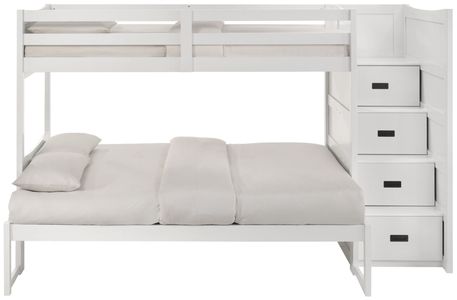 The Sami twin over full Step bunk bed brings smart design and durable comfort to a youth bedroom with its clean white finish. Built-in step storage keeps essentials organized, while the right-side headboard adds support and style. Ideal for maximizing space and enhancing everyday functionality.Read More