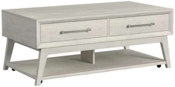 Define your living space with the transitional style of the Westland Coffee Table with Casters in Almond. It’s crisp, bright finish and unique silhouette are sure to make this table a statement piece in your home.Read More