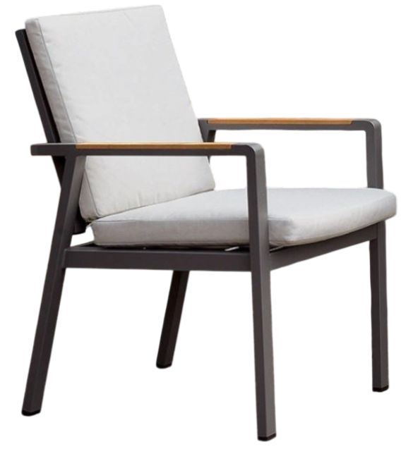 Comfort and design, this is the perfect outdoor chair for any home. Features a beige fabric cushion and gray aluminum frame. Make a bold statement by incorporating this stunning chair into your home.Read More