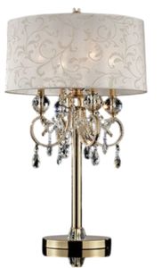 This table lamp radiates timeless elegance with its stunning gold-colored base and ivory shade featuring an etched floral design. The beaded arms and hanging crystals enhance its luxurious appeal, making it both a functional light source and a refined decorative centerpiece for sophisticated interiors.Read More