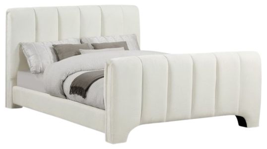 Redefine your bedroom with the Camila cream chenille fabric full bed, enveloped in plush chenille for an irresistibly soft touch. Its deep channel tufting brings both texture and sophistication, lending a bold yet elegant vibe to the contemporary design.Read More