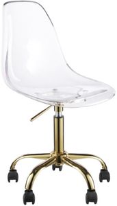 The seat and back of the chair are made from lucite polycarbonate for a modern look that's accentuated even more by the chair's gold metal frame. The seat swivels for ease of movement, and its on a five star rolling base with casters, so you can roll to the file cabinet or fax machine without getting up. Adjust the seat easily with just a touch of the lever below.