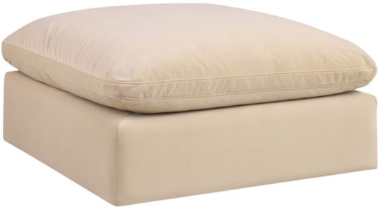 Wrapped in rich beige durable velvet upholstery, this ottoman offers a plush embrace of overstuffed down feather cushions, carefully crafted to deliver the highest level of comfort. The perfect seat for creating an oasis for relaxation, this ottoman has thick foam surrounding its frame for added support and coziness.