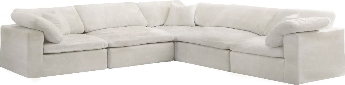 Bring home this Cozy 5-piece sectional for a fresh new look. Embrace casual elegance with this Cozy velvet cloud-like comfort modular fiber-filled seating option. Handsome from all angles, this piece features soft cream velvet upholstery to make it an easy fit in any room.Read More