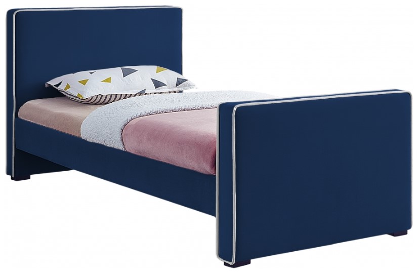 Lend your bedroom an elegant look with this Dillard velvet bed. Live out your velvet fantasy with this bed's soft navy velvet upholstery that runs the full length of the bed from headboard to footboard and is trimmed with velvet piping in a contrasting color for a contemporary vibe.Read More