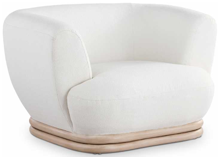 Featuring a rubber wood frame upholstered with rich cream boucle fabric this chair is both soft and comfortable to kick back. Its solid rubber wood base in a natural oak finish provides a splash of color to this cream piece, making it a stunning addition to your living area.Read More