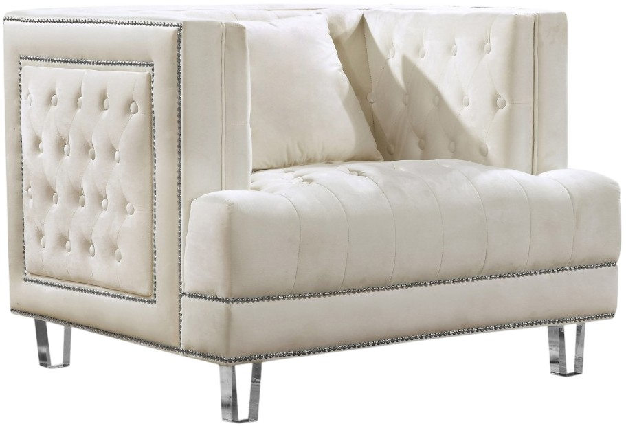 The Lucas Collection by Meridian Furniture. Features beautifully tufted velvet upholstery with a custom nail head design and clear acrylic legs. This collection is guaranteed to be the highlight of any home.Read More