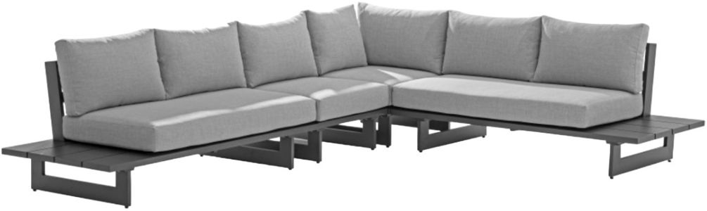 The Meridian Furniture Maldives 4-piece black/gray aluminum-fabric outdoor sectional boasts a strong dark metallic aluminum frame paired with weather-resistant gray cushions. Its modular design offers flexible seating configurations, making it perfect for patios or decks. Built for durability, it delivers long-lasting comfort and style.Read More