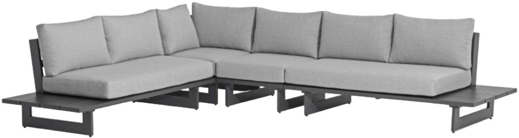 The Meridian Furniture Maldives 4-piece black/gray fabric outdoor modular sectional offers versatile seating with weather-resistant gray fabric and a sturdy black metal frame. Its modular layout adapts easily to patios or garden lounges, creating a relaxed space for gatherings. Cushioned comfort and durable materials ensure long-lasting use in outdoor environments.Read More