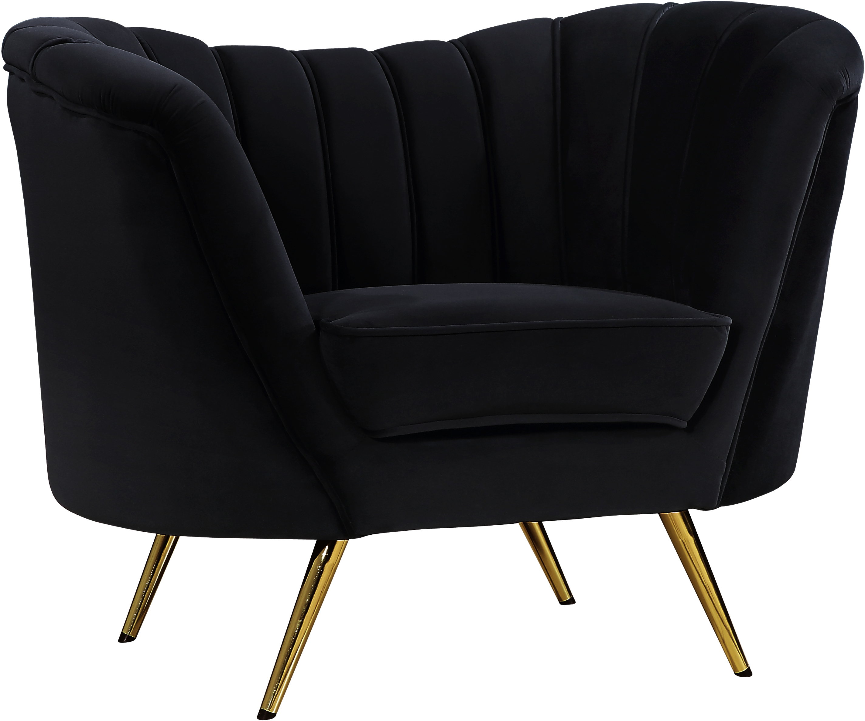Gold stainless steel legs support this chair and provide stunning contrast to the chair's plush, black fabric.