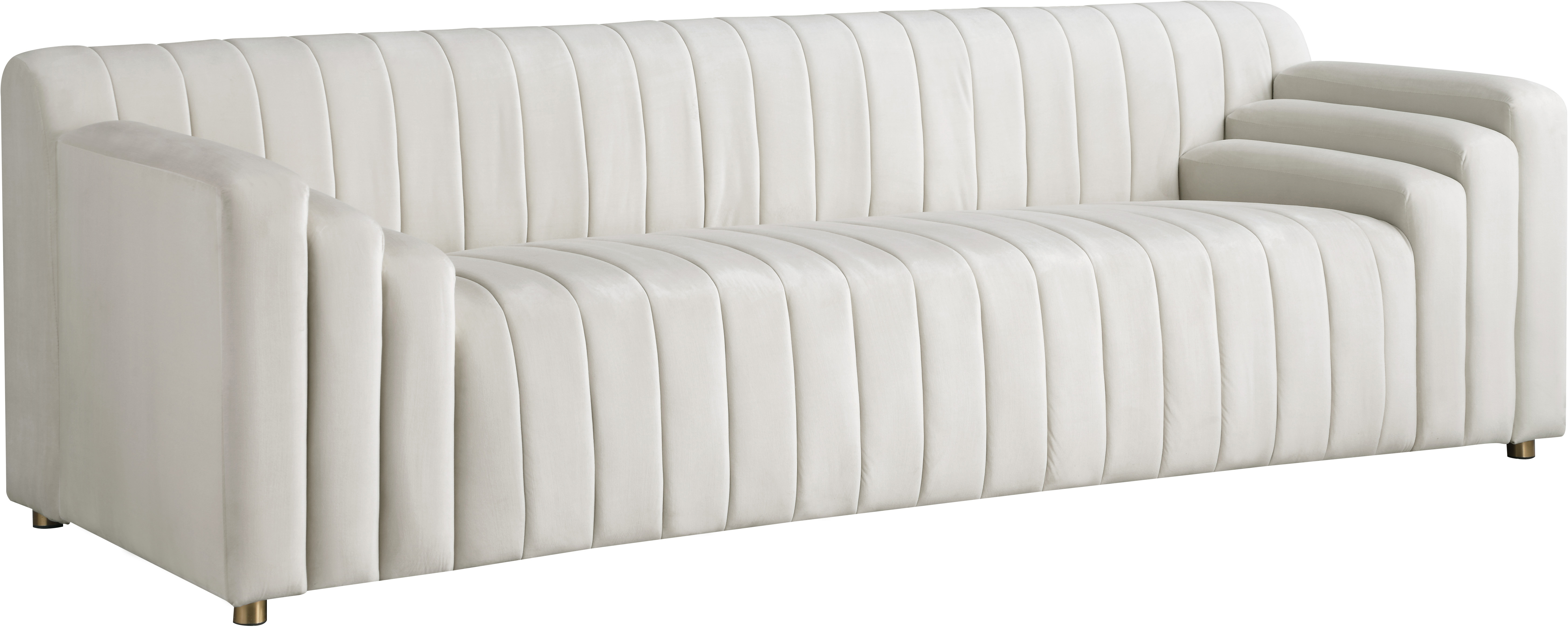 Express your bold, contemporary side with this Naya velvet sofa. This handsome piece is upholstered in cream velvet and blends seamlessly with the other units in the Naya collection, or it looks equally as beautiful on its own.Read More