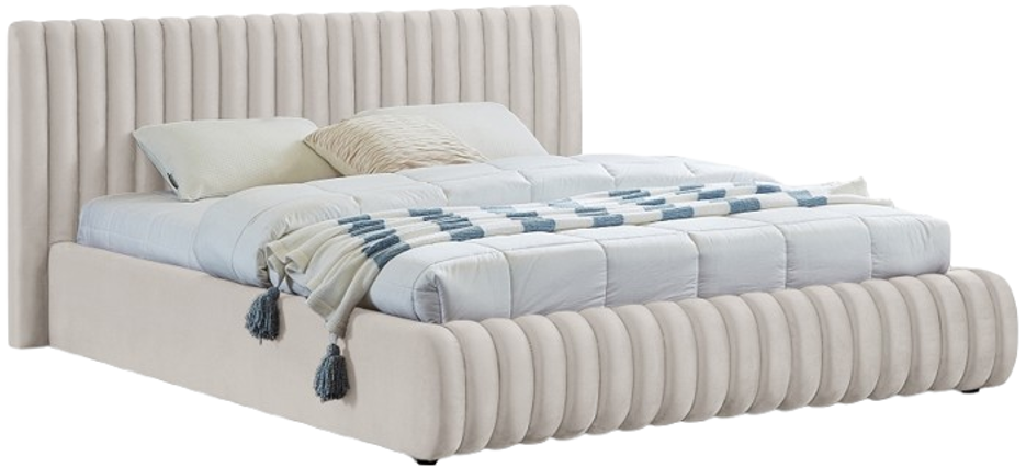 Bring upscale modernity to your bedroom space with this stunningly elegant, sumptuously appointed Nico bed. This queen bed has deep vertical channel tufting on the headboard and footboard, adding textural beauty that instantly catches the eye. The entire bed is upholstered in cream velvet, making it the star of the show.Read More