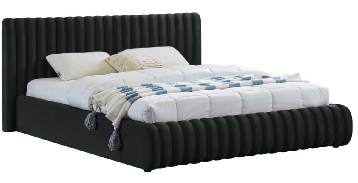 Bring upscale modernity to your bedroom space with this stunningly elegant, sumptuously appointed Nico bed. This full bed has deep vertical channel tufting on the headboard and footboard, adding textural beauty that instantly catches the eye. The entire bed is upholstered in black velvet for a luxurious design that makes the bed the star of the show.Read More