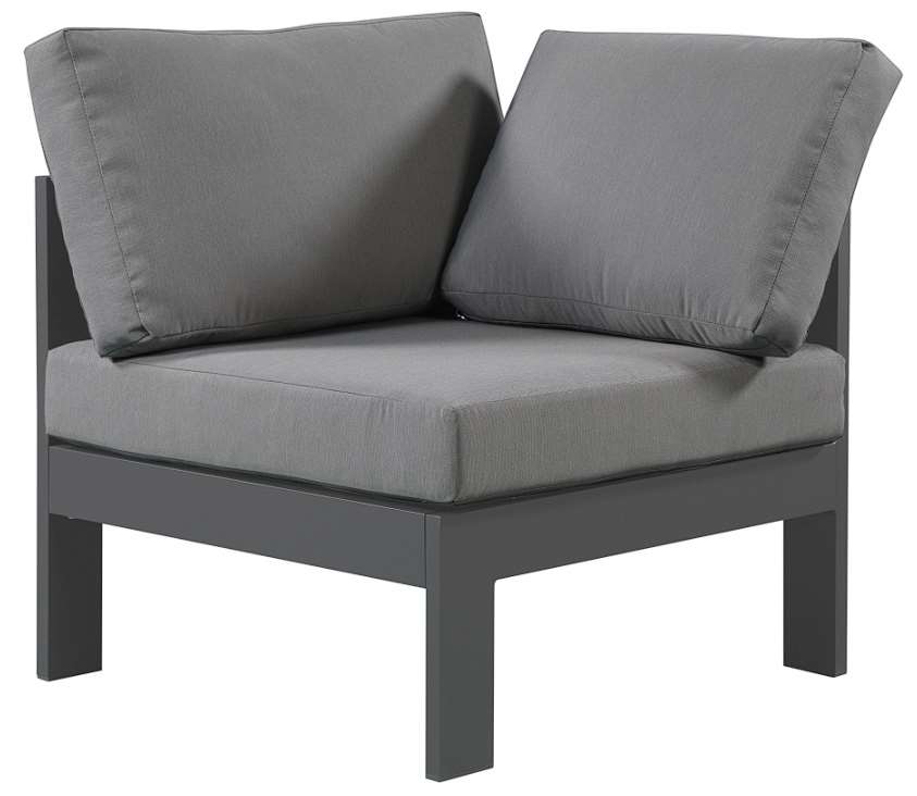 Elegant and eye-catching, the stunning white waterproof fabric Nizuc Outdoor Patio Aluminum Corner Chair from Meridian Furniture is the perfect addition to any space. Adds a contemporary style for the back yard.