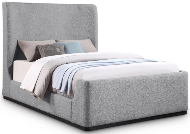 Make a bold statement with this stunning Oliver full-size bed from Meridian Furniture. Its contemporary design is comprised of rubber wood with a solid wood black wire brush finish, upholstered with rich cream boucle fabric, giving it an elegant appearance.Read More