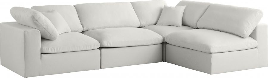 The soft cream velvet material is soft and welcoming to the touch, and the set's cushions are overstuffed with a down and feather blend to provide ample support for tired bodies.
