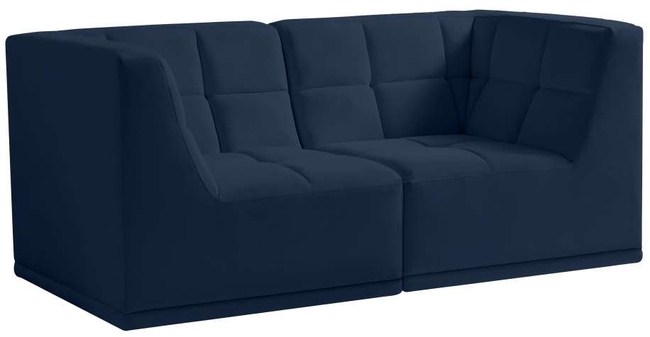 Bolster a contemporary vibe in your living room with this Relax navy modular sofa. Soft navy velvet upholstery offers delicate comfort, making this sofa cozy for anyone who sits in it. Biscuit tufting gives this sofa texture and a modern style, adding extra comfort and elegance to your living space.Read More