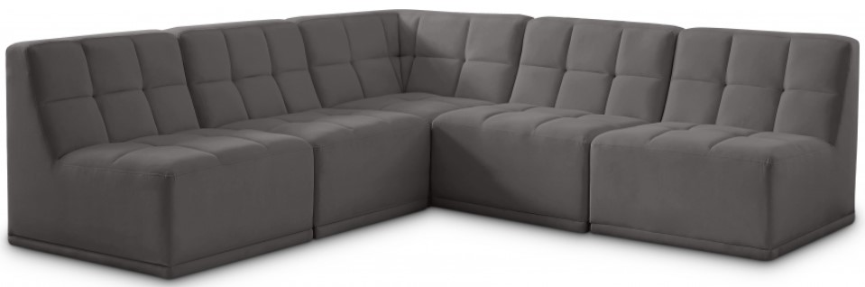 Bolster a contemporary vibe in your living room with this Relax grey modular sectional. Soft grey velvet upholstery offers delicate comfort, making this sectional cozy for anyone who sits in it. Biscuit tufting gives this sectional texture and a modern style, adding extra comfort and elegance to your living space.Read More
