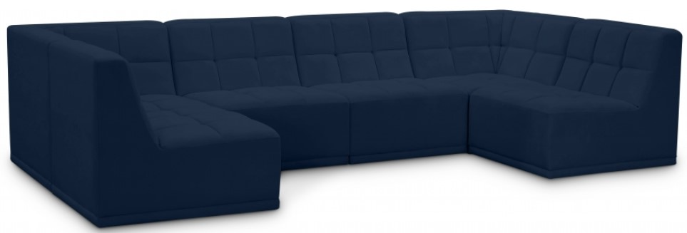 Bolster a contemporary vibe in your living room with this Relax navy modular sectional. Soft navy velvet upholstery offers delicate comfort, making this sectional cozy for anyone who sits in it. Biscuit tufting gives this sectional texture and a modern style, adding extra comfort and elegance to your living space.Read More
