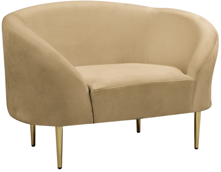 Get comfy while remaining chic in this elegant Ritz camel velvet chair. Plush camel-colored upholstery provides a soft texture that is pleasing to the senses, while its curved design offers a contemporary touch to your home furnishing.Read More