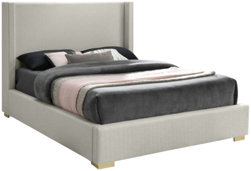 Make a big impression in the bedroom with this queen-size Royce linen textured bed. A wingback headboard is the star of the show here, with its extra height adding an element of drama to this exceptionally crafted bed. The headboard, sides and footboard of this Royce bed are covered in rich beige linen textured fabric.Read More