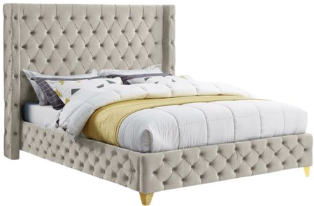 Bring luxury to the forefront when you add this Savan velvet queen-size bed to your room. Upholstered in rich cream velvet from the top of its super-high headboard down to its footboard, this beautiful bed features deep button tufting and a wingback detail to make it a true standout in your space.Read More