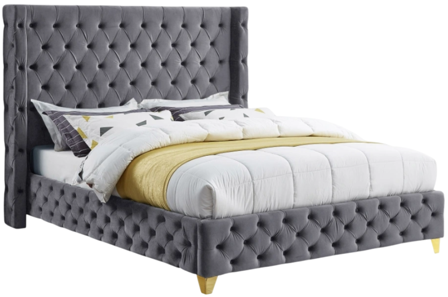 Bring luxury to the forefront when you add this Savan velvet king-size bed to your room. Upholstered in rich grey velvet from the top of its super-high headboard down to its footboard, this beautiful bed features deep button tufting and a wingback detail to make it a true standout in your space.Read More