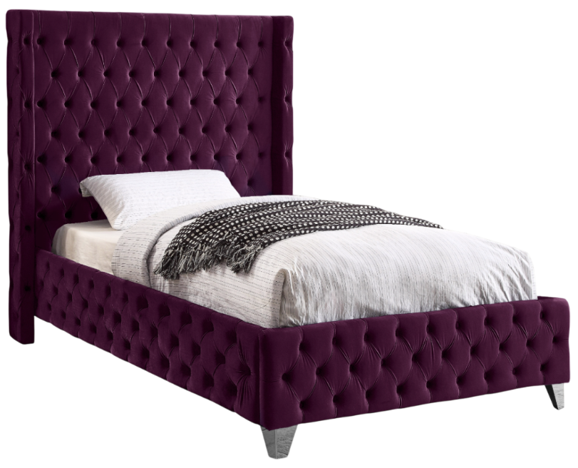 Bring luxury to the forefront when you add this Savan velvet full-size bed to your room. Upholstered in rich purple velvet from the top of its super-high headboard down to its footboard, this beautiful bed features deep button tufting and a wingback detail to make it a true standout in your space.Read More