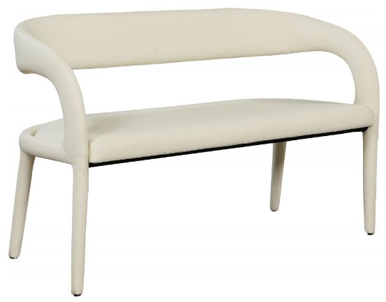 Modernize your home with this Sylvester cream vegan leather bench. Featuring soft and durable cream vegan leather upholstery, this bench offers you a comfortable and long-lasting place to sit while you dine. It's fully upholstered, giving it a solid look that is ideal for any contemporary home.Read More