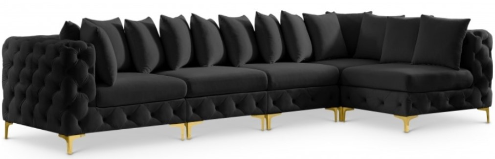 Lean back and relax on this Tremblay sectional. Featuring soft black velvet upholstery with deep button tufting, this sectional adds a bold touch to any living space. A complete set of gold and chrome legs are included, so you can change it up to suit your home décor.Read More