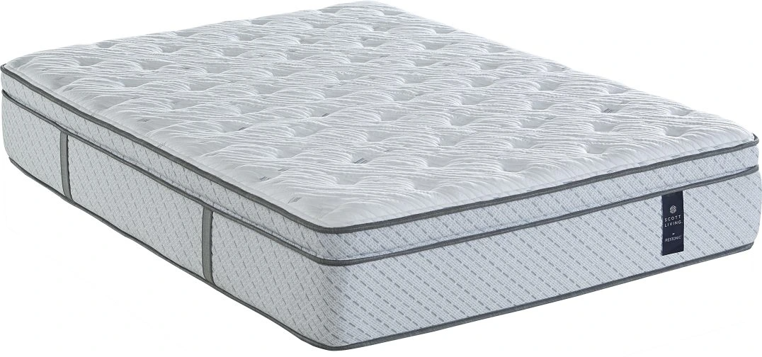 Scott Living™ Indigo Hybrid Plush Euro-Top Mattress blends a cool-touch VentiCool™ cover and gel-infused quilt with AlumiLast® memory foam layers and supportive Q5 zoned wrapped coils with foam-encased edges—delivering plush comfort, temperature regulation, motion isolation, and edge support.Read More